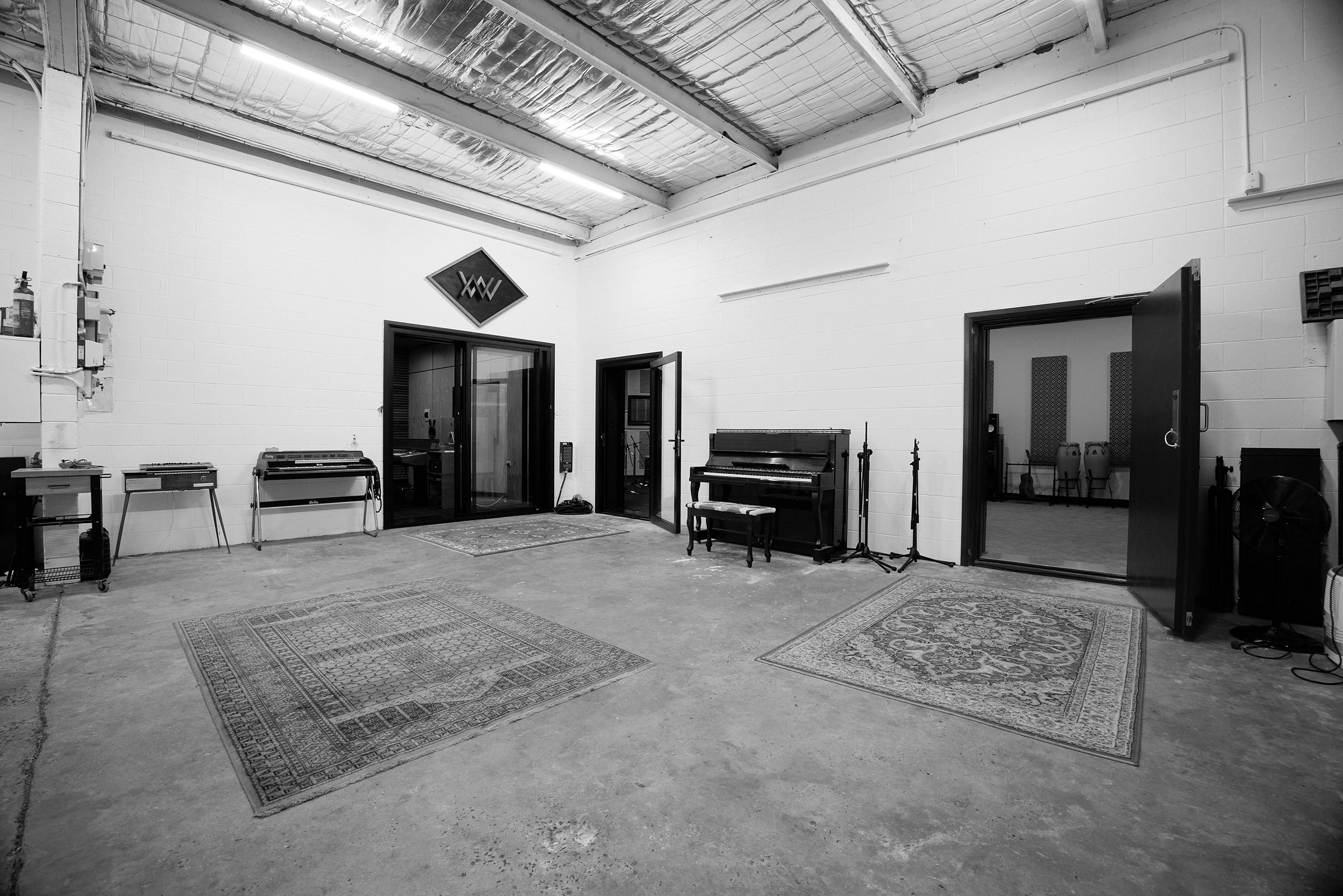 Book the Full Studio – Control Room, Studio A and Studio B. Tie lines through to all rooms, as well as throughout the entire warehouse, with the ability to record anywhere in the factory! Hire Equipment Inclusive.